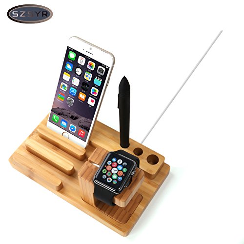 -. Title : 3 in 1 Apple Watch Stand,Bamboo iWatch Charging Docking Station with Pen Holders for 38mm 42mm iWatch and iPhone SE / 7 Plus / 7 / 6s Plus / 6s / 6 Plus / 6 and Other Smartphones.
