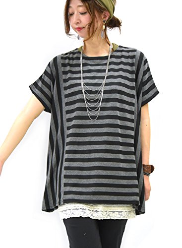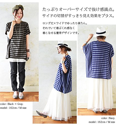 -. Title : [アンドイット] and it_ メッシュボーダー 切替BIGカットソー レディース トップス Tシャツ
