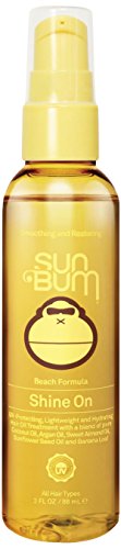 -. Feature : SMOOTHING, RESTORING AND UV COLOR PROTECTING FORMULA. LIGHTWEIGHT PRE-STYLING OIL PROTECTS AND PREVENTS SPLIT ENDS AND FLY-AWAYS. / REDUCES FRIZZ AND KEEPS IT UNDER CONTROL IN ALL WEATHER CONDITIONS. TREATS WITH INGREDIENTS THAT STRENGTHEN AND RESTORE FOR DAMAGE RESISTANCE. / ADDS A BRILLIANT SHINE AND SILKINESS WITHOUT WEIGHT. ACCELERATES DRYING TIME BY 40%. BY SUN BUM; MADE IN THE USA. / CRYSTAL-CLEAR, NO DYES TO ALTER HAIR COLOR TONE. INFUSED WITH SEA BOTANICALS, ULTRA-LIGHT ARGAN OIL AND SWEET ALMOND OIL. / UV PROTECTING BLENDED WITH PURE COCONUT OIL, ARGAN OIL, SWEET ALMOND OIL, SUNFLOWER SEED OIL AND BANANA LEAF. PARABEN FREE. COLOR SAFE. ALCOHOL FREE. CRUELTY FREE. MADE IN USA. 3 FL. OZ. / 88 ML