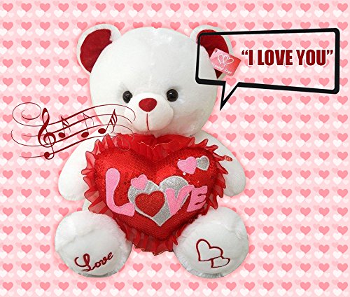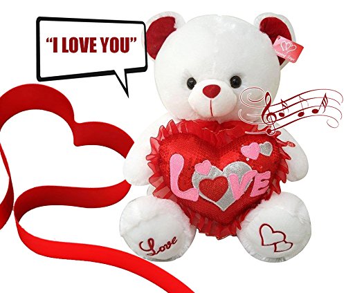 -. Binding : Toy -. Brand : Unique Imports -. EAN : 0642078498176 -. Feature : 12" Stuffed Animal White Bear - Cutest Gift for Valentines Day / Says "I Love You" When the Arm Is Pressed with cute voice / Also Cheeks Light-up Red When Arm Is Pressed / White Soft Plush That makes you wanna cuddle up / Great gift Her or His - Make your Boo smile this Valentines -. IsAdultProduct : 0 -. Label : Unique Imports -. Manufacturer : Unique Imports -. MPN : LYSB01B5AT5XG-TOYS -. PackageQuantity : 1 -. PartNumber : LYSB01B5AT5XG-TOYS -. ProductGroup : Toy -. ProductTypeName : TOYS_AND_GAMES -. Publisher : Unique Imports -. Studio : Unique Imports -. Title : Cute Her or His Valentines Day Gift Speaks "I Love You" & Turns Red Soft Plush Teddy Bear -. UPC : 642078498176
