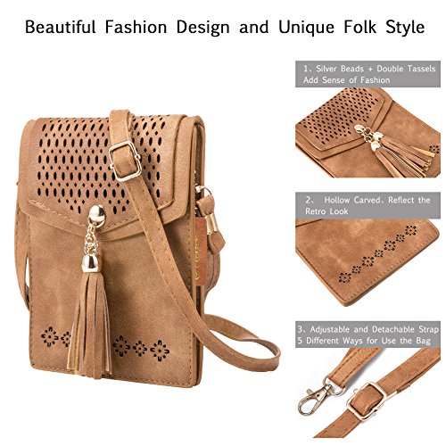 Women Small Crossbody Bag, seOSTO Tassel Cell Phone Purse Wallet Bags