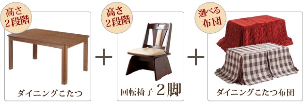 ふっくらと丸みを帯びた天板がかわいい、北欧テイストモダンダイニングこたつ+専用省スペース布団+肘無回転椅子2脚の4点セット。冬場はもちろんオフシーズンもダイニングセットとして。年間通して使用できるデザインがウリです。セットのこたつ布団は選べる3種類から。高さを調整できる便利な継脚、スペーサー(高さ5cm)付き。薄型石英管ヒーター(600W・中間スイッチ式、コード長3m)採用。