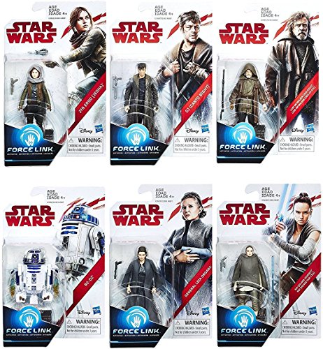 -. Feature : Set of 6 includes: Jyn Erso, DJ (Canto Bight), Luke Skywalker (Jedi Exile), R2-D2, General Leia Organa, Rey (Island Journey) / Bring the galaxy to life with Force Link! Wear Force Link gear to activate lights, sounds, and more in Force Link-activated figures, accessories, vehicles, and playsets! / With Force Link, the power of the Force is in your hands! (Requires Force Link. Available in Starter Set. Sold separately.) / The Star Wars: The Last Jedi Orange 3 3/4-Inch Action Figures feature awesome heroes and villains from a galaxy far, far away. Each one includes cool sculpting, awesome accessories, and the kind of detail you love in your action figures.