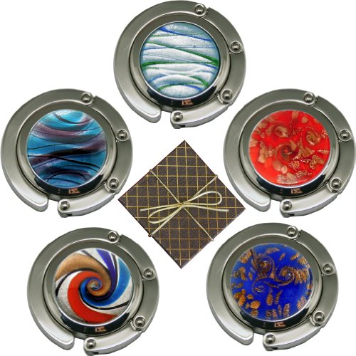 Binding : Apparel Product Description Murano Art Glass folding purse hooks are hand painting to make a beautiful, unique accessory. They fold-up into a 2 inch disk that fits easily into any handbag. Chatt folding purse hooks hold any handbag under a table or counter top for security, convenience and to keep it off a dirty floor. Made of solid steel that can hold 15 pounds. Price includes a black velvet carrying pouch. This product is also know as handbag hanger, handbag holder, handbag hook, purse holder and purse hanger. 0