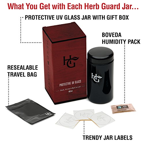 Herb Guard - 20 Gram Smell Proof Container and Stash Jar (400 ml) Bonus Humidity Pack Keeps Goods Fresh for Months