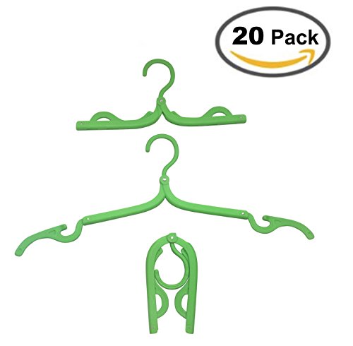 JJMG New 20pcs Folding Hangers Plastic Kids Clothing T-Shirt Jacket Dress Skirt Pants Hanger For Home/Travel Hooks For Drying Clothes In Assorted Bright Colors (Light Green)