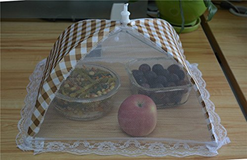 Product DescriptionSimple grid folding food cover. Summer deworming, innovative design. Beautiful appearance, suitable for home. Insect repellent insecticide. Easy to use, easy storage. Package: 2 pieces,measures around 33"L x 6"W and 2"Tall after opened,serving dishes up to 32" diameter.0