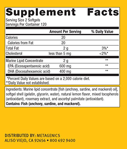 Each OmegaGenics EPA-DHA 500 softgel provides a total of 300 mg EPA and 200 mg DHA.