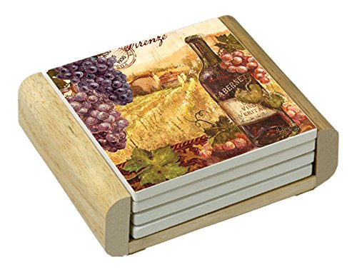 Counter Art Absorbent Coasters Wine With A View In Wooden Holder, Set of 4