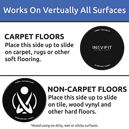 Studio : INEVIFIT LLC Publisher : INEVIFIT LLC Binding : Misc. Product Description The Ideal Workout Fitness Sliders Getting and staying fit has never been easier! INEVIFIT has made it convenient to implement low impact sliding exercises into your workouts. This is essential for reducing the risk of injury during exercise since the sliding discs have been designed to smoothly glide on all indoor surfaces. Easily target any muscle group to tone your body, slim down and even increase strength. The best part is that sliding exercisers require keeping your core engaged during movements, so you will be able to burn more calories over the same amount of time. This will help you get that summer body you always wanted faster than ever! Next Workout Only a Slide Away Consistent gains in your fitness are now closer than ever! The INEVIFIT Core Sliders come with a compact carrying case that allows you to take them to the gym, studio or even in trips. This means that you will be able to turn your ambient space into a full body workout area at any time to reach your fitness goals faster than ever. Completing your next full body workout is as easy as having your sliders with you! For Beginners to Fitness Professionals Whether you are a fitness professional tracking your workouts or someone just starting to live an active lifestyle, you will find that the INEVIFIT Core Sliders are a great fit for your fitness needs. Low impact sliding exercises have been found to be a great compliment for all workout routines since they reduce the risk of injuries while engaging stabilizer muscles to get a more complete and efficient burn. No more excuses, begin sliding into a fitter version of yourself today! Section 1 Our Fitness Sliders come clearly marked so that you know exactly which side to use when working out on carpet vs other kinds of hard flooring. They are also conveniently marked with a large high contrast white logo so that you can spot them from a distance during your workouts. 0