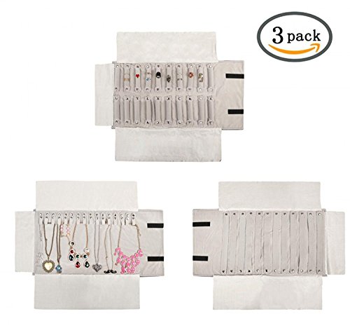 - Package includes: 1 x Earrings bag, 1 x Rings bag, 1 x Necklaces bag, can store all of your jewelry. 16 snap hanger for storing lots of necklace, and prevent them from getting tangled; 12 Removable belt for storing lots of earrings; 20 Removable ring bars for storing lots of rings, and you can easily find your favorite finger accessory from it.