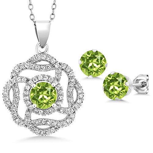 -. Title : 4.61 Ct Round Green Peridot 925 Sterling Silver Pendant Earrings Set