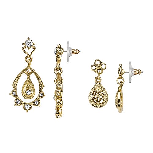 -. Binding : Jewelry -. Brand : Downton Abbey -. Color : Clear -. Department : womens -. EAN : 0716806181590 -. Feature : Large Earrings: L-1.5 in x W-0.75 in, Small Earrings: L-1 in x W-0.4 in / A crystal post suspends a crystal encrusted scalloped teardrop and pear-shaped pendant that cascades from the center of the larger earrings. Coordinating petite drop earrings complete the set. / Made in United States -. Label : 1928 Jewelry -. Manufacturer : 1928 Jewelry -. Model : 18159 -. MPN : 18159 -. PackageQuantity : 1 -. PartNumber : 18159 -. ProductGroup : Jewelry -. ProductTypeName : FASHIONOTHER -. Publisher : 1928 Jewelry -. Studio : 1928 Jewelry -. Title : Downton Abbey Boxed Gold-Tone Crystal Scallop Drop Earrings Jewelry Set -. UPC : 716806181590