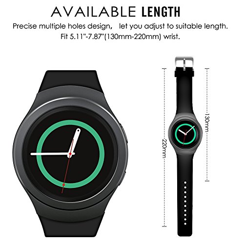 -. Feature : AVAILABLE LENGTH: Precise multiple holes design, let you adjust to suitable length. Fit 5.11"-8.66" (130mm-220mm) wrist. / PREMIUM MATERIAL: Soft silicone with smooth finish for a sporty look.Comfortable for sporting time, nice replacement for lost or old damaged bracelet. / CONVENIENT CONNECTOR: Comes with Samsung Watch Lugs on both ends, which locks onto Samsung Watch Band Interface precisely and securely. Easy install ON/OFF. / OPTIONAL FASHION REPLACEMENT: Personalized Your Samsung Galaxy Gear S2 smart watch with this refined replacement wrist band, creates a strong statement for yourself,sold by SKYLET. / WHAT YOU GET: Accessory band for Samsung Gear S2 SM-R720 only, SKYLET fan-favorite 30-Days money back, 18-month warranty for quality-related issues and lifetime friendly customer service.