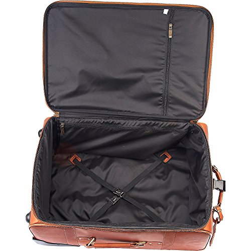 -. Feature : Lightweight, durable, top-grain cowhide leather / Deluxe antique brass hardware and recessed roller bearing in-line skate wheels / Dimensions: 24 x 19 x 9. Weight: 12LB / Extra long locking retractable handle / Three outer zipper pockets, two inner zipper pockets and elastic cross straps