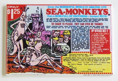 -. Brand : Blue Crab Magnets -. EAN : 0640265406171 -. Feature : Made of a high quality magnet and vivid P.R.Int / Usually ships in one business day / Made in the USA -. Label : Blue Crab Magnets -. Manufacturer : Blue Crab Magnets -. ProductGroup : Kitchen -. ProductTypeName : KITCHEN -. Publisher : Blue Crab Magnets -. Studio : Blue Crab Magnets -. Title : Sea Monkeys Fridge Magnet -. UPC : 640265406171
