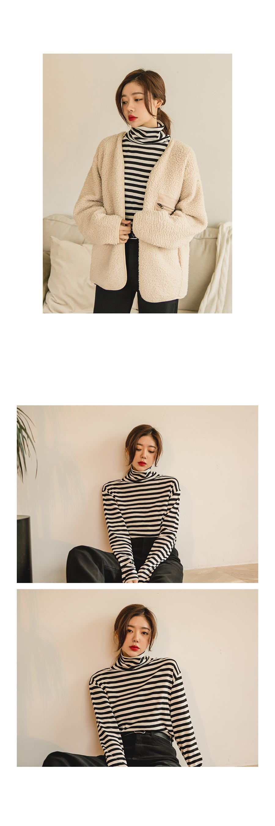 적당히 도톰한 두께감과 안감이 기모로 되어있어 겨울까지