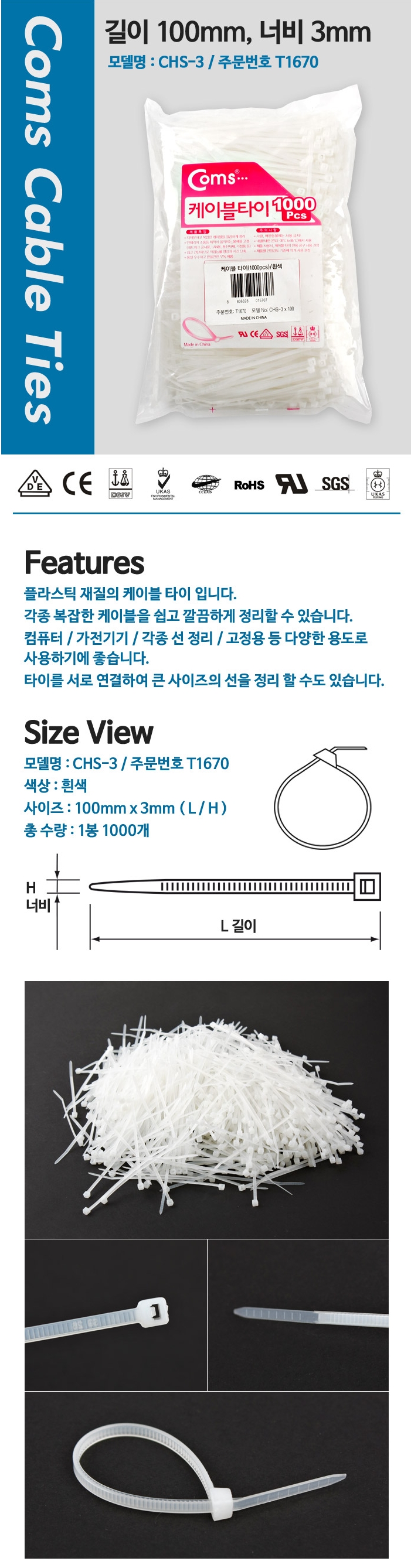 Cable tie 100mm x 3mm rod 1 1000pcs