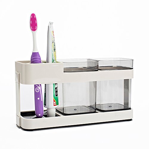 Eslite Toothbrush Toothpaste Stand Holder with 2 Cups Bathroom Storage Organizer