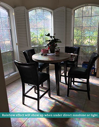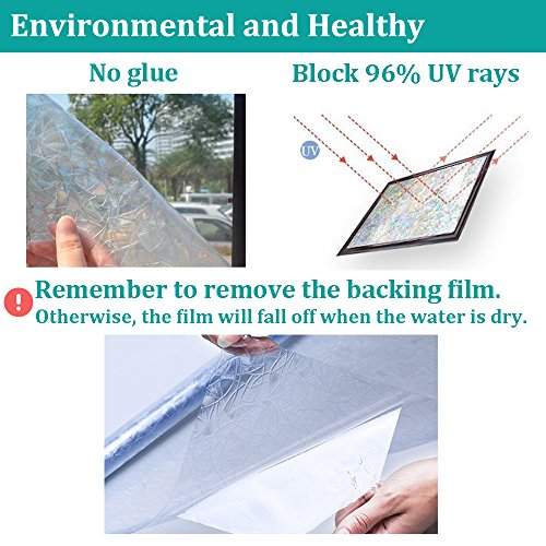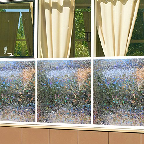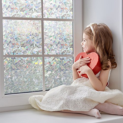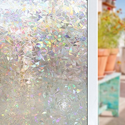 - 【Please note that this window film is transparent, not a multicolored one.】Privacy rating:★★☆☆☆, decorative window film(Mild privacy, not recommended for bathroom). Reflective triangle patten, provides privacy and allow light in. Rainbow effect only shows up under direct sunshine or light.
