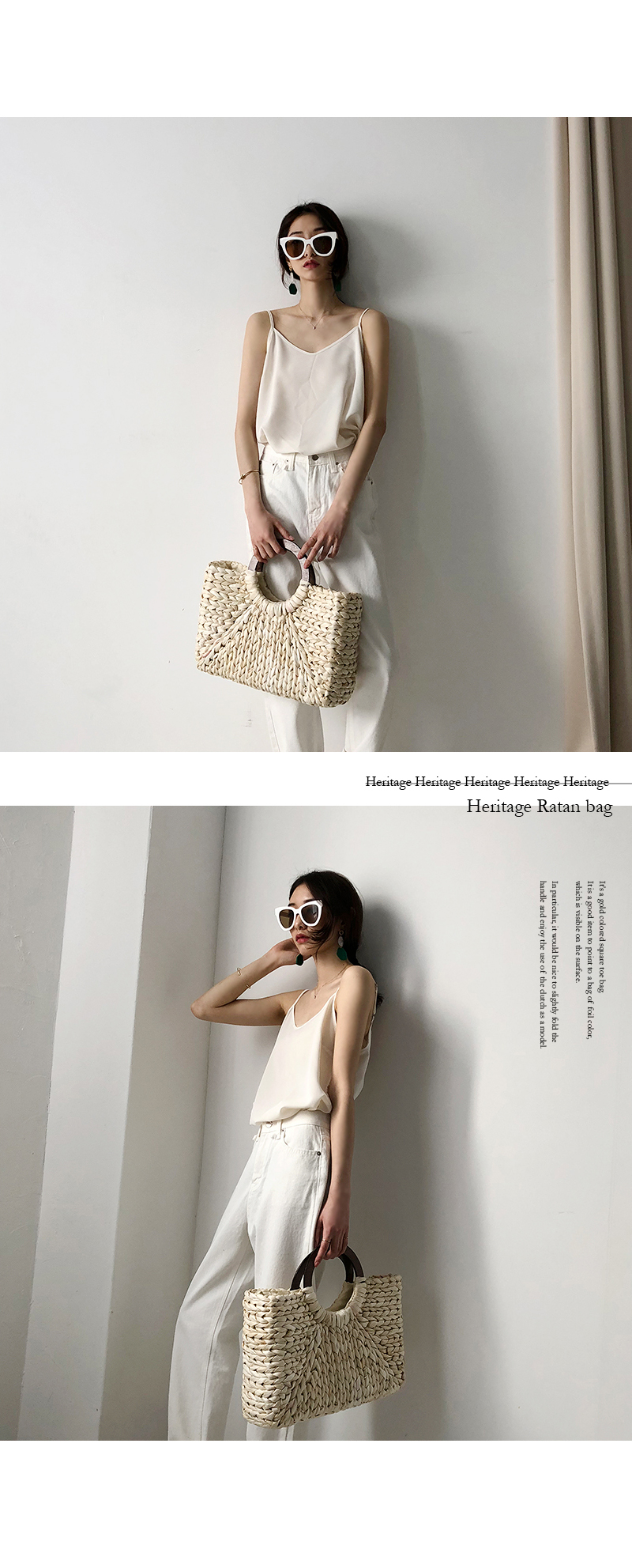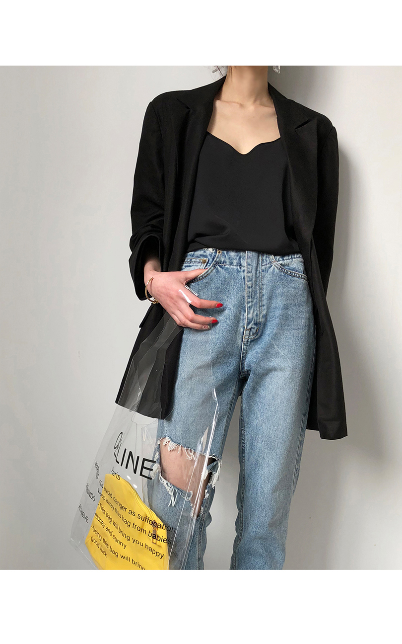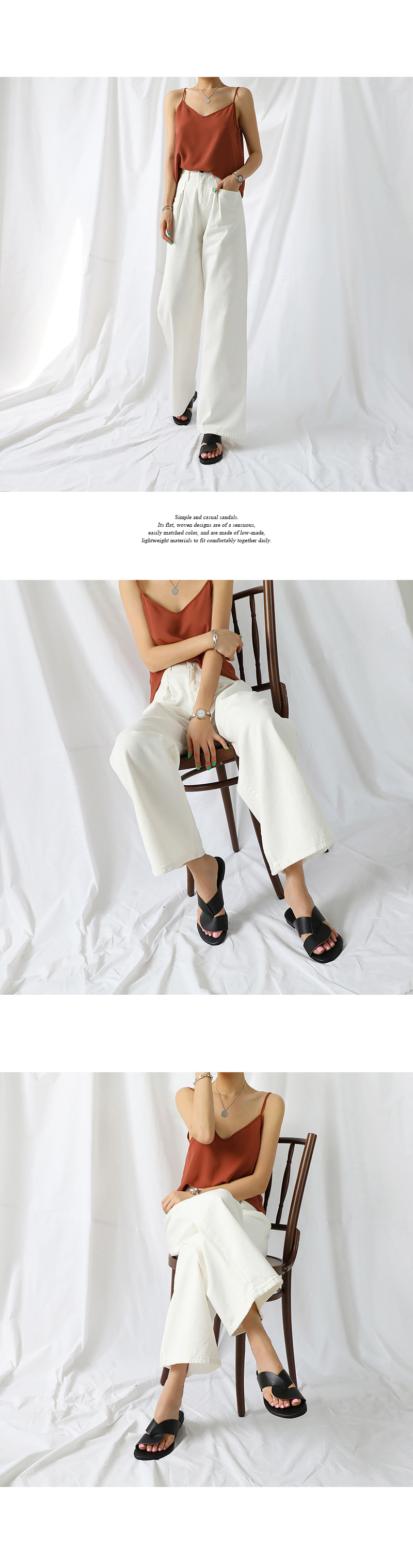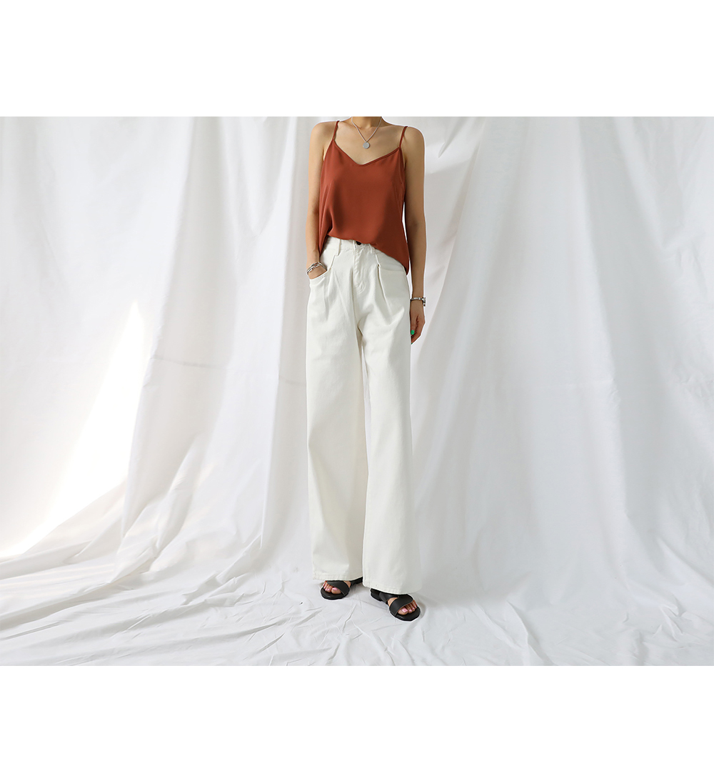 실키한 텍스처로 흐르듯이 떨어지는 라인이며 적당히 여유 있는 실루엣이어서 이너뿐만 아니라 여름엔 단독으로도 충분히 착용해 보실 수 있습니다.