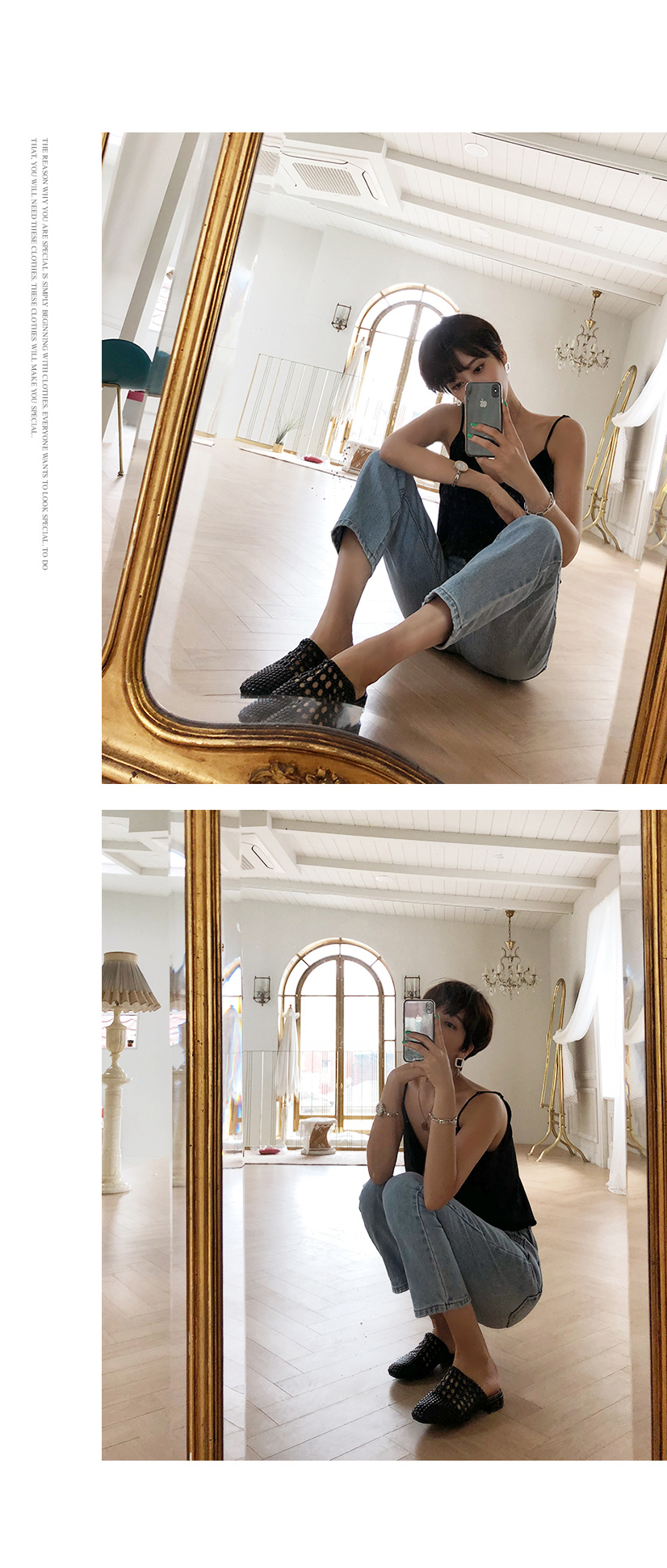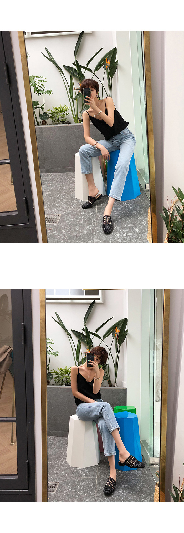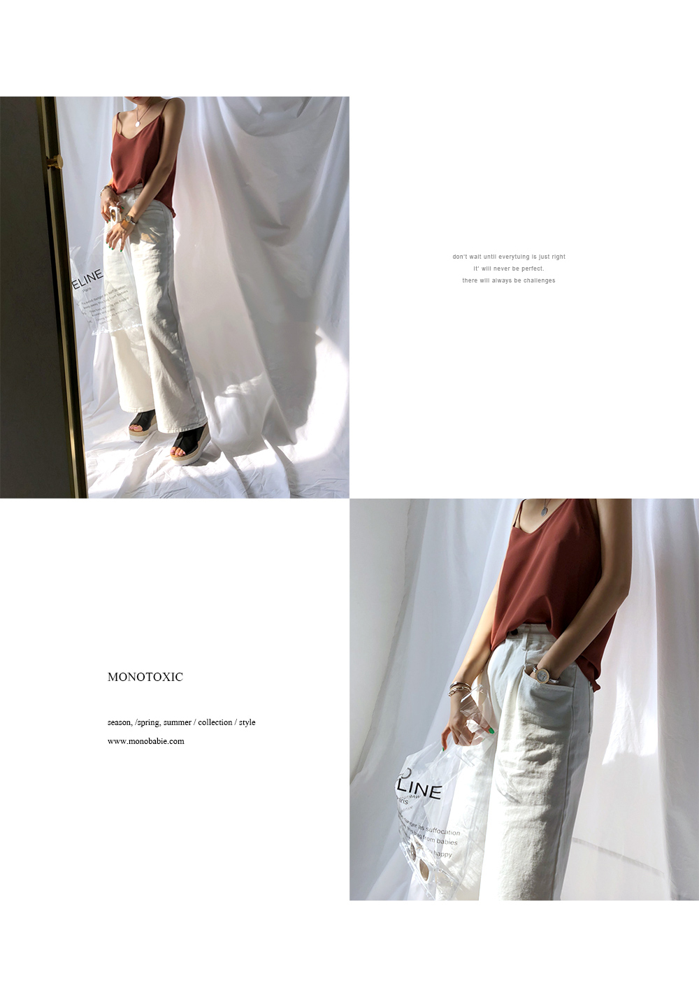 실키한 텍스처로 흐르듯이 떨어지는 라인이며 적당히 여유 있는 실루엣이어서 이너뿐만 아니라 여름엔 단독으로도 충분히 착용해 보실 수 있습니다.