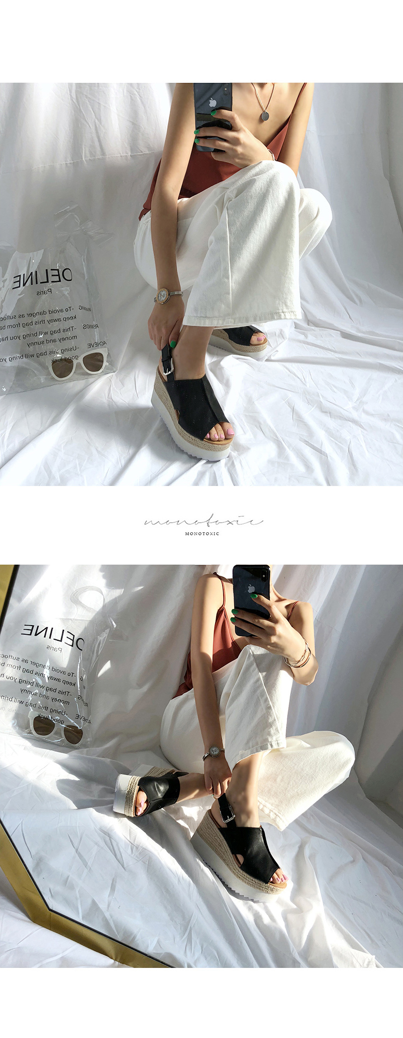 DETAILS - 소재 : 폴리100% - 컬러 : ivory,sora,brick,black - 피팅감 : 정사이즈 - 비침 : 없음 / 안감 : 없음
