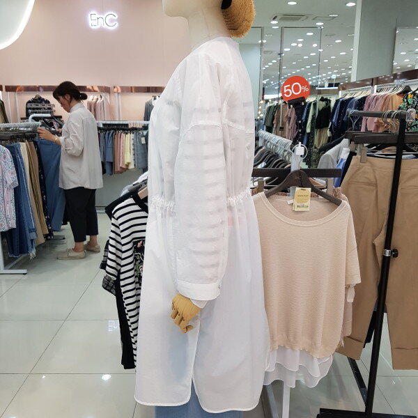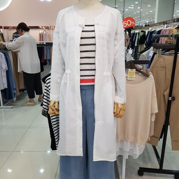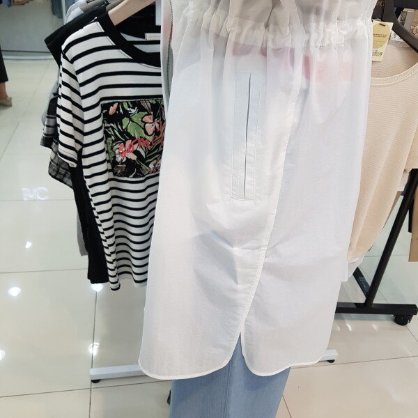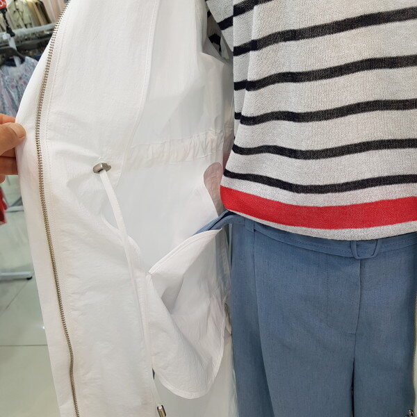 안쪽까지 비치는 원단으로 한여름까지 편안하게 입으실수 있으며 허리에 스트링들어가있어 라인감도 만질수 있는 인기 점퍼
