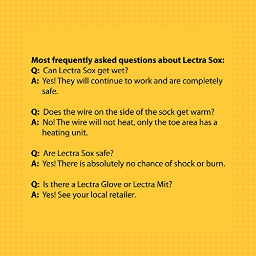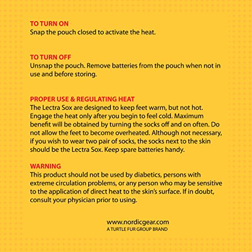 The Lectra Sox are designed to keep feet warm, but not hot. Engage the heat only after you begin to feel the cold. Maximum benefit will be obtained by turning the socks off and on often.