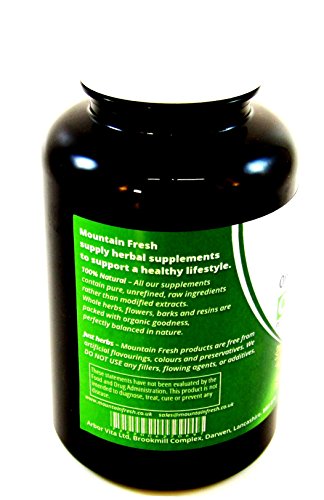 Studio : Mountain Fresh Publisher : Mountain Fresh Binding : Health and Beauty Product Description Hand Made Fresh For Every Order We use freshly ground, whole herbs, flowers, barks and resins to produce the finest quality herbal supplements. Our cellulose capsules are made to order. Pure, fresh and full of goodness...the way nature intended. Botanicals 100% Pure - herbal foods, not modified extracts. Grown Naturally - non-irradiated, GMO free, wild-crafted where possible. Nothing Added - no chemicals, additives, preservatives, fillers, or flowing agents. Capsules Clear shells made from cellulose. Naturally derived from plant fibres. Suitable for Vegetarians and Vegans. Packaging Supplied in a heat-sealed foil pouch for freshness and security. Made from PET/AL/LLDPE to provide high barrier protection against light, moisture and oxygen for extended life. Re-sealable for safe storage. 0