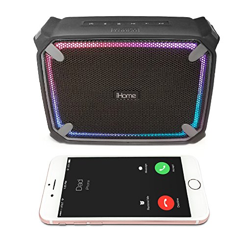 The iHome iBT372 is a waterproof portable Bluetooth stereo speaker system with speakerphone that connects to a Bluetooth device for wireless audio playback. Works with free Melody voice powered personal music assistant app to play music from Spotify, iHeartRadio and more. Accent lighting with fi ve color changing modes with multiple colors at the same time for fun, fabulous color eff ects. Rechargeable Lithium ion battery lets you enjoy your music anywhere (USB charging cable included). Includes aux-in jack to listen to any audio source. IP67 rated waterproof and dustproof. Rugged shockproof cabinet.Feature
