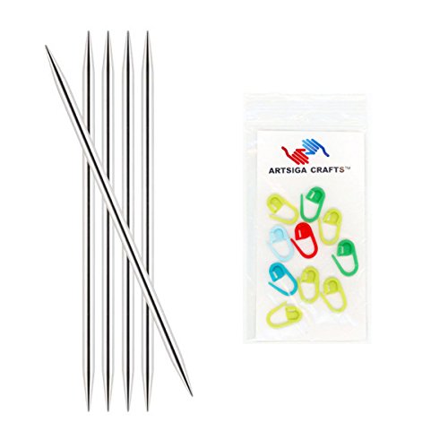 - Bundle includes 1 Knitter's Pride Nova Platina Double Point 6-inch (15cm) Knitting Needles (Set of 5) Size 1.5 (2.5mm) with 10 Artsiga Crafts Stitch Markers 120123