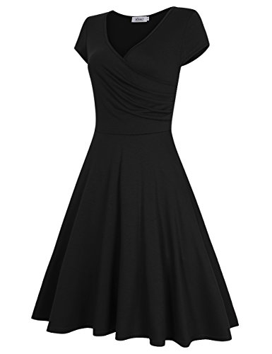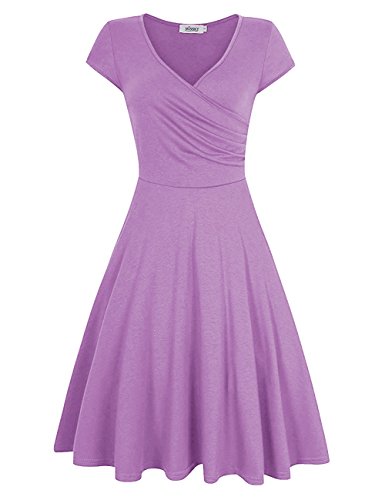 . STYLE -- A-line shaped V-neck short sleeve dress. The stretchy fabric and high cotton content make this dress close fitting and very comfortable to wear.