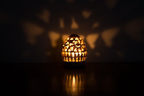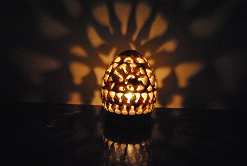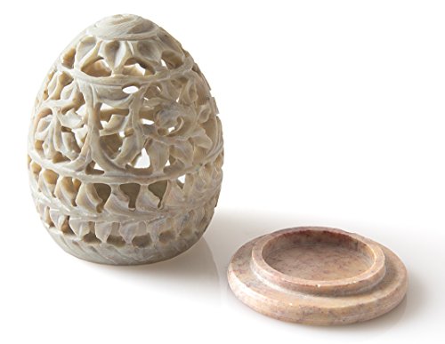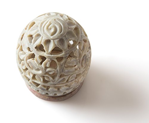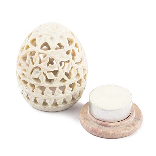StarZebra Novelty Item - Soapstone Tealight Candle Holder Egg Shaped with Intricate Tendril Openwork and Floral Pattern
