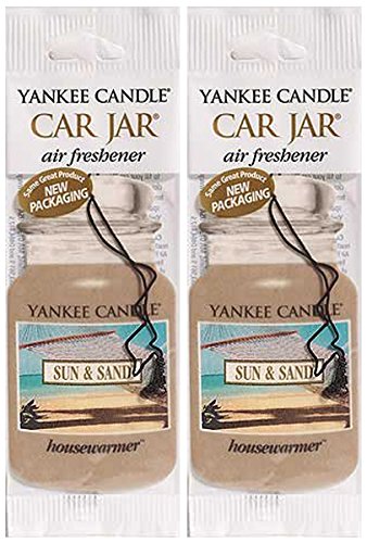Yankee Candle Car Jar Classic Cardboard Car ,Home & Office Hanging Air Freshener, Sun & Sand (Pack of 2)
