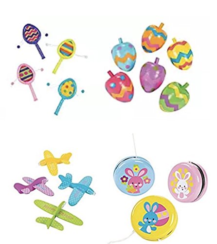Easter Egg Noisemakers, Spin Tops, Gliders and Yo-Yos Set (48 Pieces)