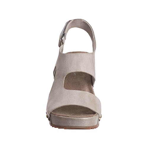 Binding : Apparel Product Description This wedge sandal is the winning combination of chic and comfort. The sleek and simple metalic upper is hand brushed and has an adjustable strap at the heel, suiting feet of every shape and size. The look is completed with the similarly brushed platform sole. 0
