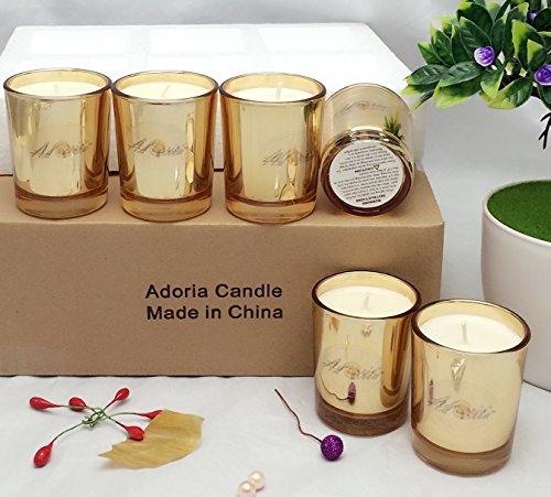 Adoria Soy Candles Gold Mercury GlassTumbler-100% Natural Soy wax made-2"xTall 2.5"-2.2OZ-13Hour Burn(Pack of 6)
