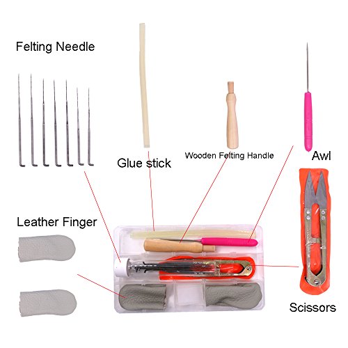 - Package include contains wooden felting handle, needles,scissors, awl, leather finger cot, glue stick, everything needed to do basic needle felting