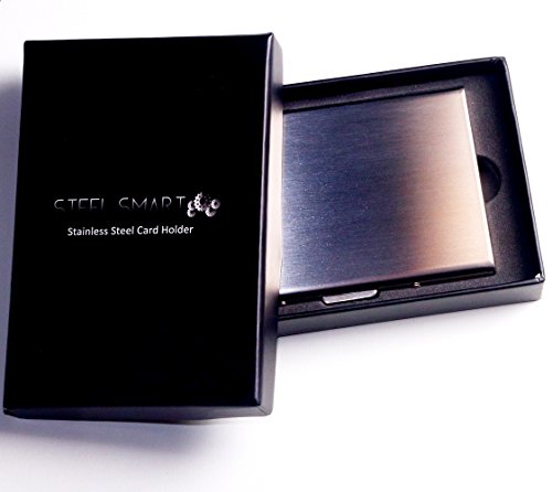 RFID Stainless Steel Wallet Card Holder - Brushed Metal For Premium Quality - Slim, Modern Credit Card Case - For Men & Women - Best Protection for your Bank and ID Cards against Cyber Fraud - Awesome Gift Box