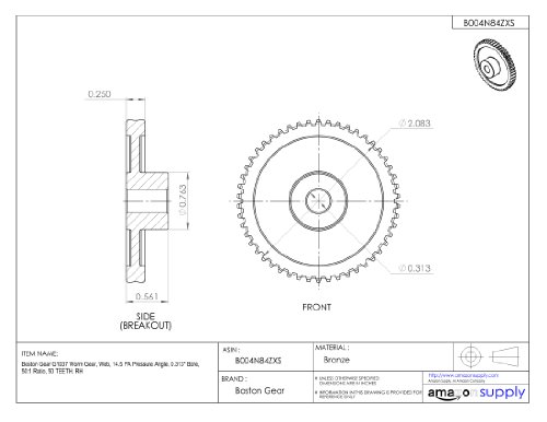 Boston Gear G1037 Worm Gear, Web, 14.5 PA Pressure Angle, 0.313" Bore, 50:1 Ratio, 50 TEETH, RH