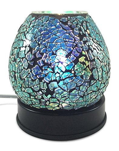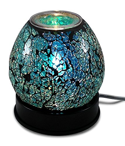 Opalescent Blue Teardrop, Glass Mosaic Electric Touch-controlled Fragrance Lamp with Free Replacement Halogen Bulb