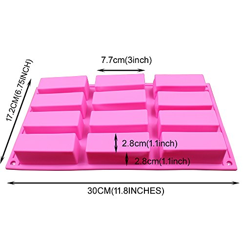 BAKER DEPOT 12 Holes rectangular Silicone Mold for Handmade Soap,Jelly,Candle Cake Bakeware,Set of 2