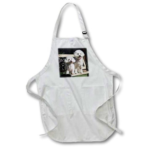 3dRose apr_88774_4 Two Bishon Frise Dog - US05 ZMU0060 - Zandria Muench Beraldo - Full Length Apron with Pockets, 22 by 30-Inch, Black