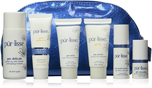On-the-go essentials for taking Chinese beauty rituals with you. Everything you need for youthful, radiant skin in petite packaging, perfect for first-time users and jetsetters. 14 days of TLC helps prevent wrinkles and fine lines, even for sensitive skin. It's pure genius. Kit includes: pur delicate gentle soy milk cleanser, 1.7 ounce. Pur youth preserve age-delay skin serum, 0.35 ounce. Pur moist hydra balance moisturizer, 0.5 ounce. Pur protect essential daily moisturizer SPF 30, 0.5 ounce. Pur eye adore quadra benefit eye serum, 0.1 ounce. Blue cosmetic pouch. Same as individual sale. Same as individual sale. Same as individual sale.Feature