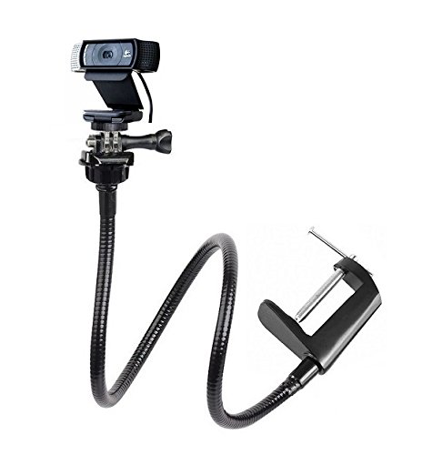 The mount adapter on the clamp is designed for webcam,card camera, action camera, Security camera, it is a good friend for your webcam. Features: You can swivel and bend it any way you like and be confident it will remain in position. The clamp allows you to clip it to most light stands, pipes or board ect. The jaw of the clamp features a soft cushion that will help protect item surfaces, such as the surface of light stand. The jaw of the clamp fit the Desk,Table,Sideboard Max thickness 5.6cm (2.2 inches) 360° rotatable head design allows you to take pictures from different directions. Made of high quality metal, strong and durable enough for long time daily use. Specifications: Color: Black Main Material: Metal plastic Item Weight: Approx.441g / 15.6oz Item Length: Approx.64cm / 25inches Max load weight 0.5 kg (1.1 lb) Package Weight: Approx.462g / 16.3oz Suitable: Logitech Webcam C922 C930e C930 C920 C615; Logitech Brio 4K; Logitech C925e; Microsoft LifeCam Studio 1080p HD Webcam; NetGear Arlo,Arlo pro,Arlo go Security camera; Any Webcam with standard 1/4 screw hole; Package List: 1 * Bracket Clamp 1 * Quick Release Buckle 1 * Long Screw 1 * 1/4 screw thread adapter 0