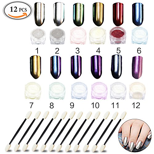 Title : Travelmall 12 Box Sets Shinning Mirror Chrome Refective Nail Glitter Powder Magic Mirror Nail Art Decoration with Free Nail Brushes