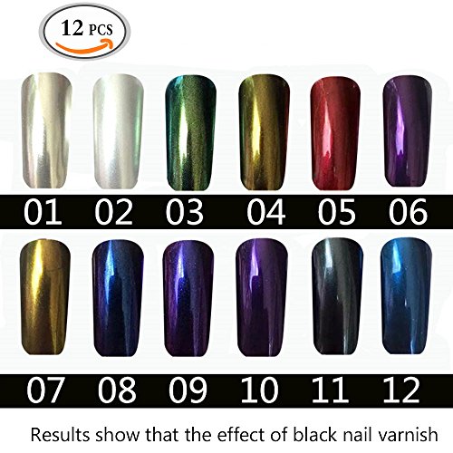 Feature : Hottest trend in the 2016 Summer Mirror Nail Powder / 12 color amazing mirror powder glitter pigment give you a true chrome mirrored shiny effect. / Package: 12 box nail Powder 12 pc Free nail brush / Easy to apply on natural or artificial nails / Attention:UV/LED lamp, UV base gel and UV gel color needed to achieve chrome nails