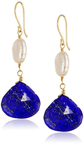 -. Feature : Drop earring in 14k yellow gold featuring coin pearl and faceted lapis lazuli teardrop / The natural properties and process of pearl formation define the unique beauty of each pearl. The image may show slight differences in texture, color, size, and shape. / Carved rings are naturally occurring imperfections that result from the pearl rotating inside the mollusk as it is growing. They define the unique beauty of each pearl and may vary in size, number, and depth per pearl. / The natural properties and composition of mined gemstones define the unique beauty of each piece. The image may show slight differences to the actual stone in color and texture. / Made in the United States