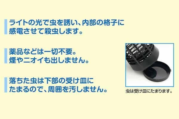 | 仕様 | 電源:AC100V、50/60Hz 電圧:約1000V(殺虫時の瞬間電圧) 消費電力:4W コード長:1.3m 取扱説明書付(パッケージに記載)、保証書付(保証期間:3ヶ月) |